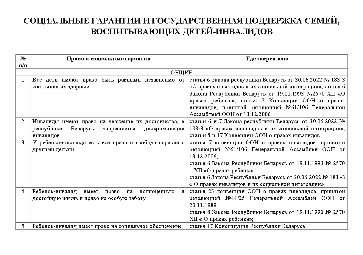 СОЦИАЛЬНЫЕ ГАРАНТИИ И ГОСУДАРСТВЕННАЯ ПОДДЕРЖКА СЕМЕЙ,ВОСПИТЫВАЮЩИХ ДЕТЕЙ-ИНВАЛИДОВ